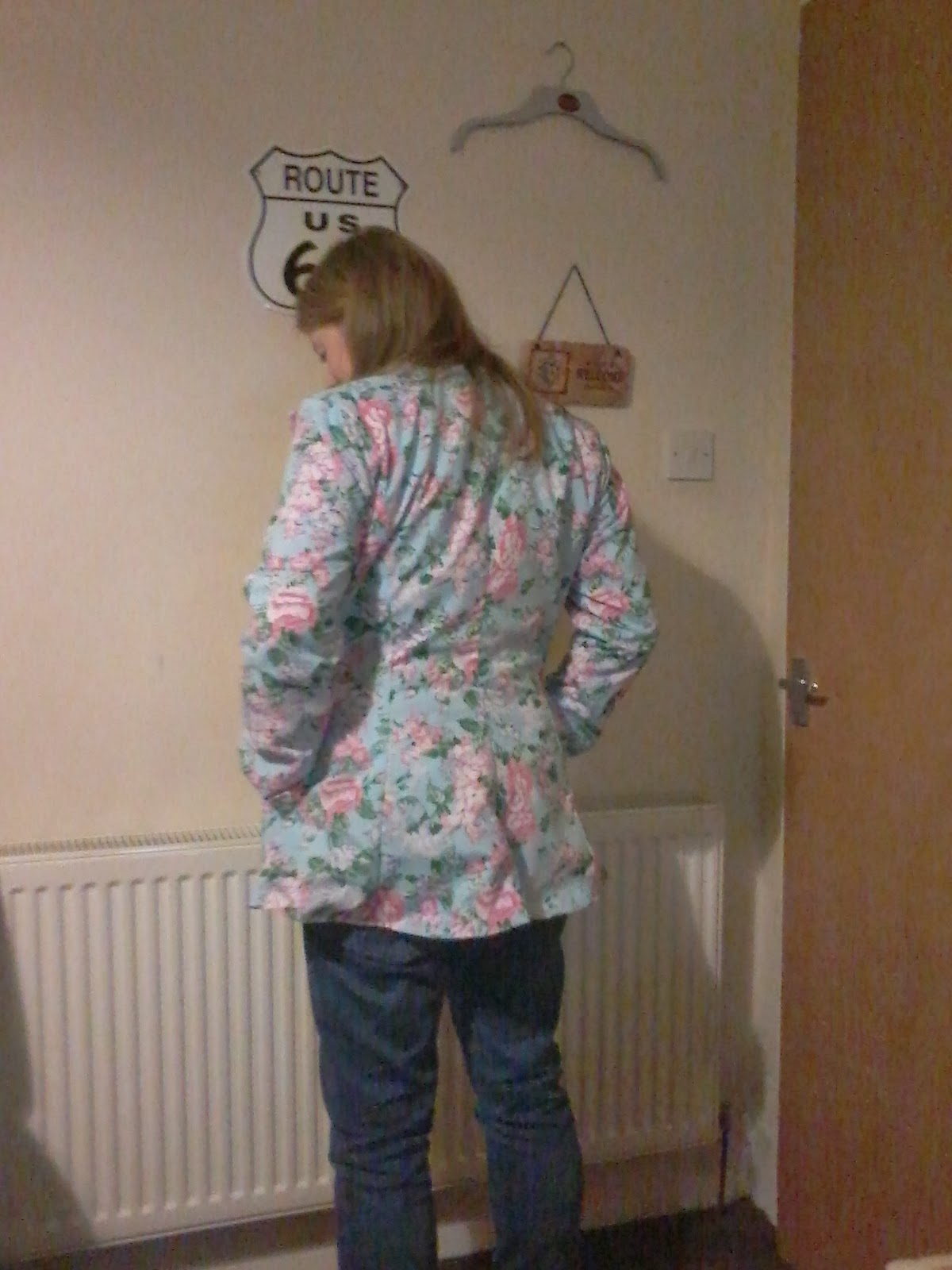 So off to the sale shop and the cheapest fabric I could find was £2/m in this awesome flowery print so I decided that if i did like the finished article it wouldn't be a waste of material and my time. I think it paid off because the shape is awesome and the resulting coat is quite summery.