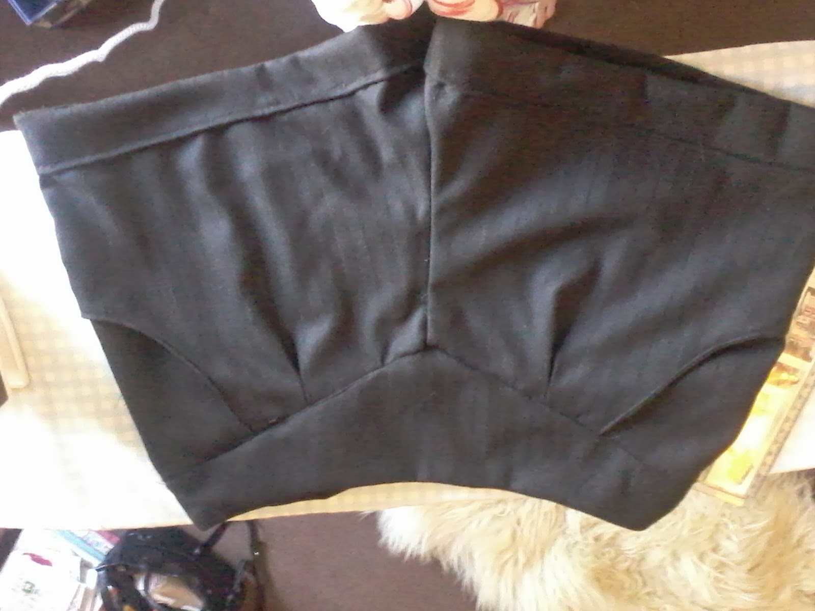 My overlocking foot (the wool was rather prone to the odd frey! (and I dont yet have an overlocker)), my stitch ripper (more on that in a sec) and my invisible zipper foot! So I made a rather slight mistake and stitched one of the pockets onto the wrong side of the front panel... :-\ what a dumbass! haha however a glass bottle (ahem) of wine down I threw a hissy fit and left them languishing for an evening. I also managed to stitch the back on back to front. URGH! so yeah after picking out the stitches they kind of stretched an itty bitty. This kind of caused problems later attaching the waistband to the legs :-(. Im hoping this won't be too noticeable! What does anyone else do when working with wool? I thought of throwing them in the dryer however I didnt want them to frey or anything?!