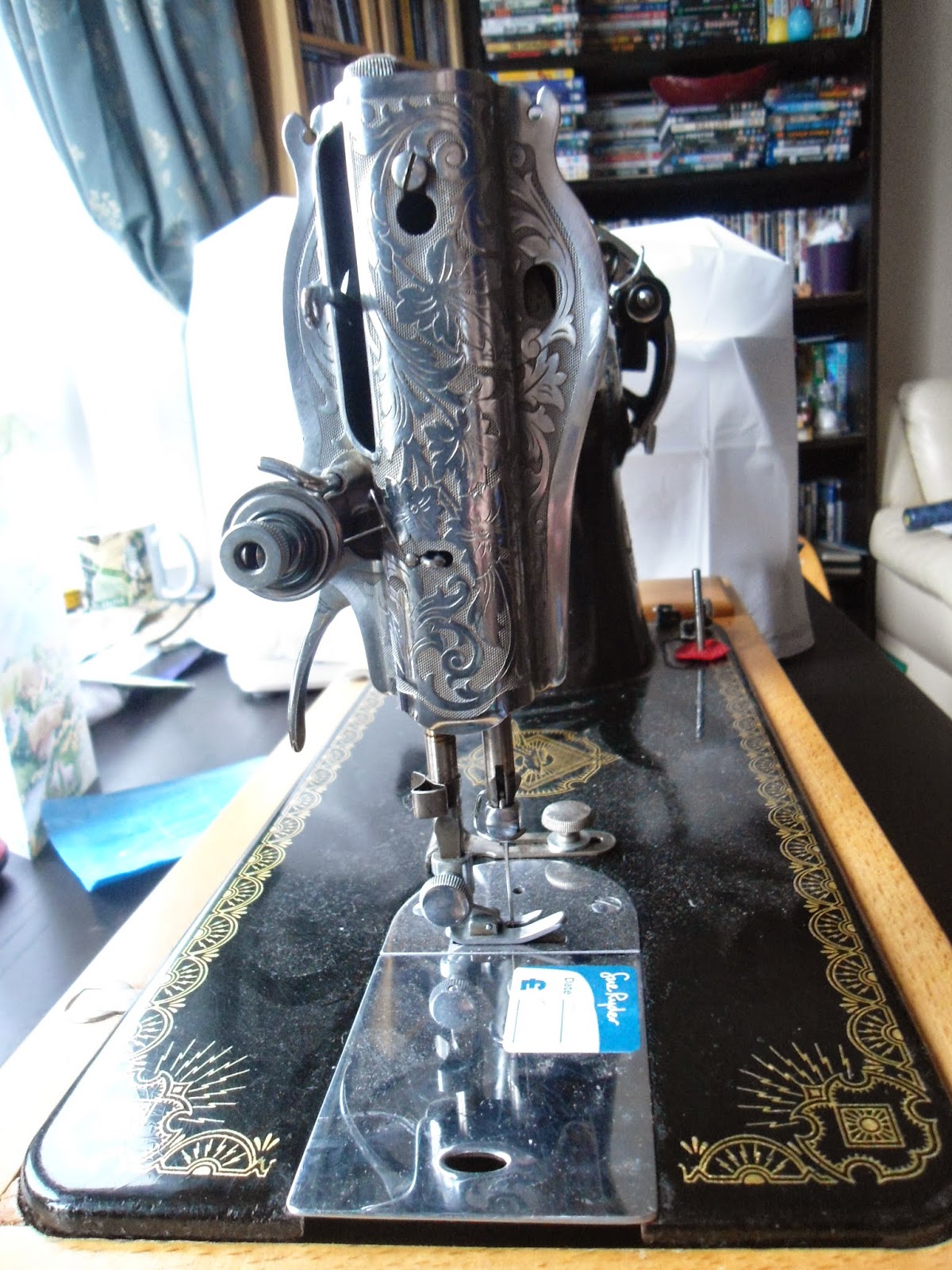 This beautiful mechanical singer machine. I'm still working on its origins however the serial number plate is intact and the presence of this thread guide suggests that it is a later model.