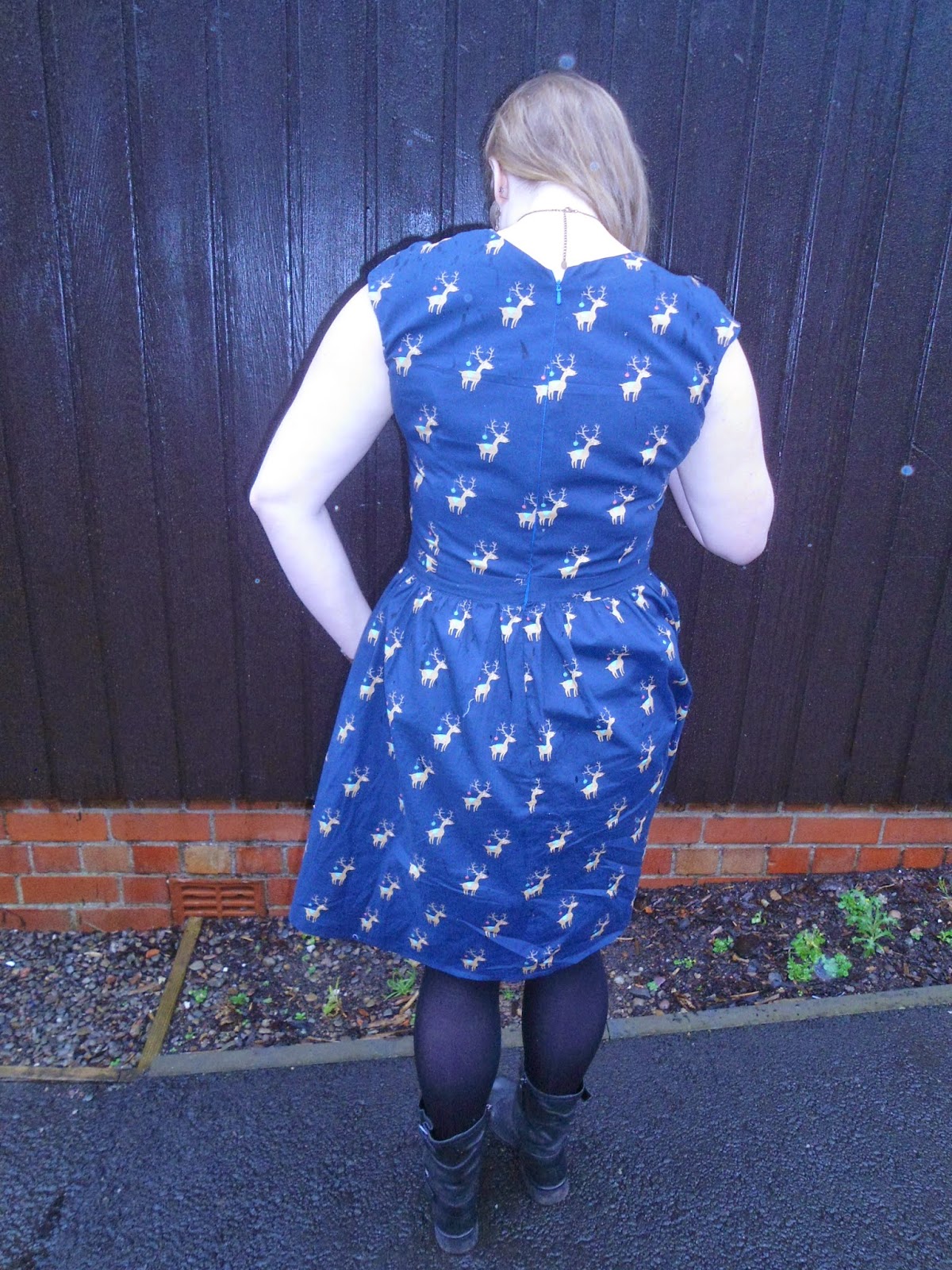 Deletejust lovely … what are those on the fabric!? reindeers with Christmas ornaments in their antlers … oh no so cute … Wish you a joyful Chrismas day you certanly have the perfect dress for it!