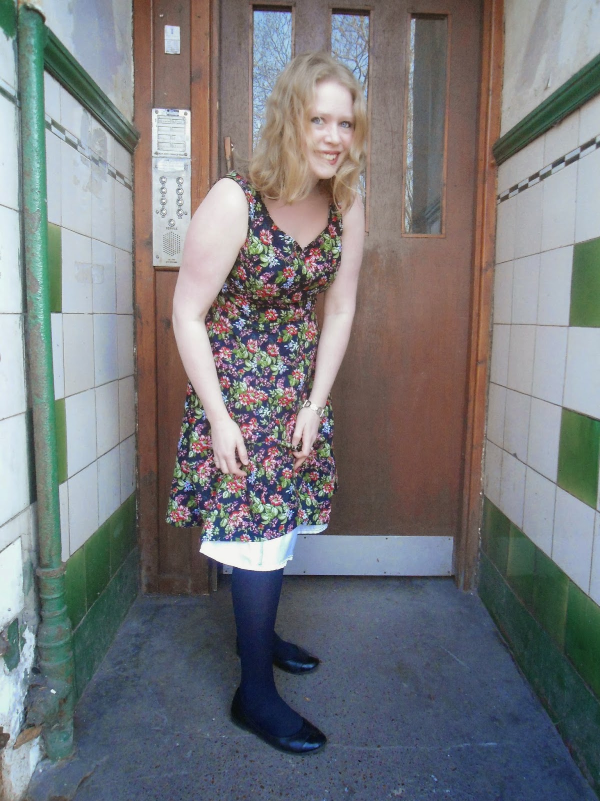 The fabric was a 45" wide cotton from Mandors. I realised at the last minute that I didn't actually have any fabric that was appropriate for a first run of the dress so spent ages lurking all the new bolts which have recently appeared. I felt the flowers on this print stood out more than a regular floral.