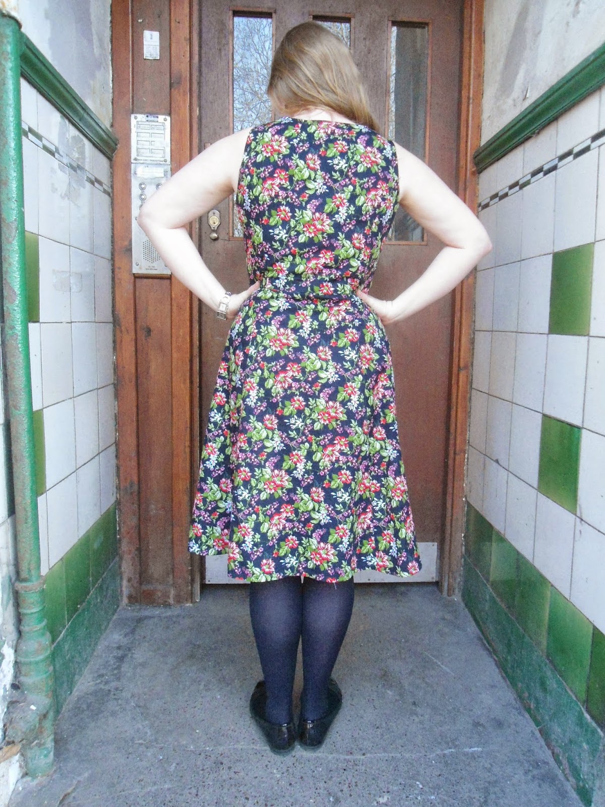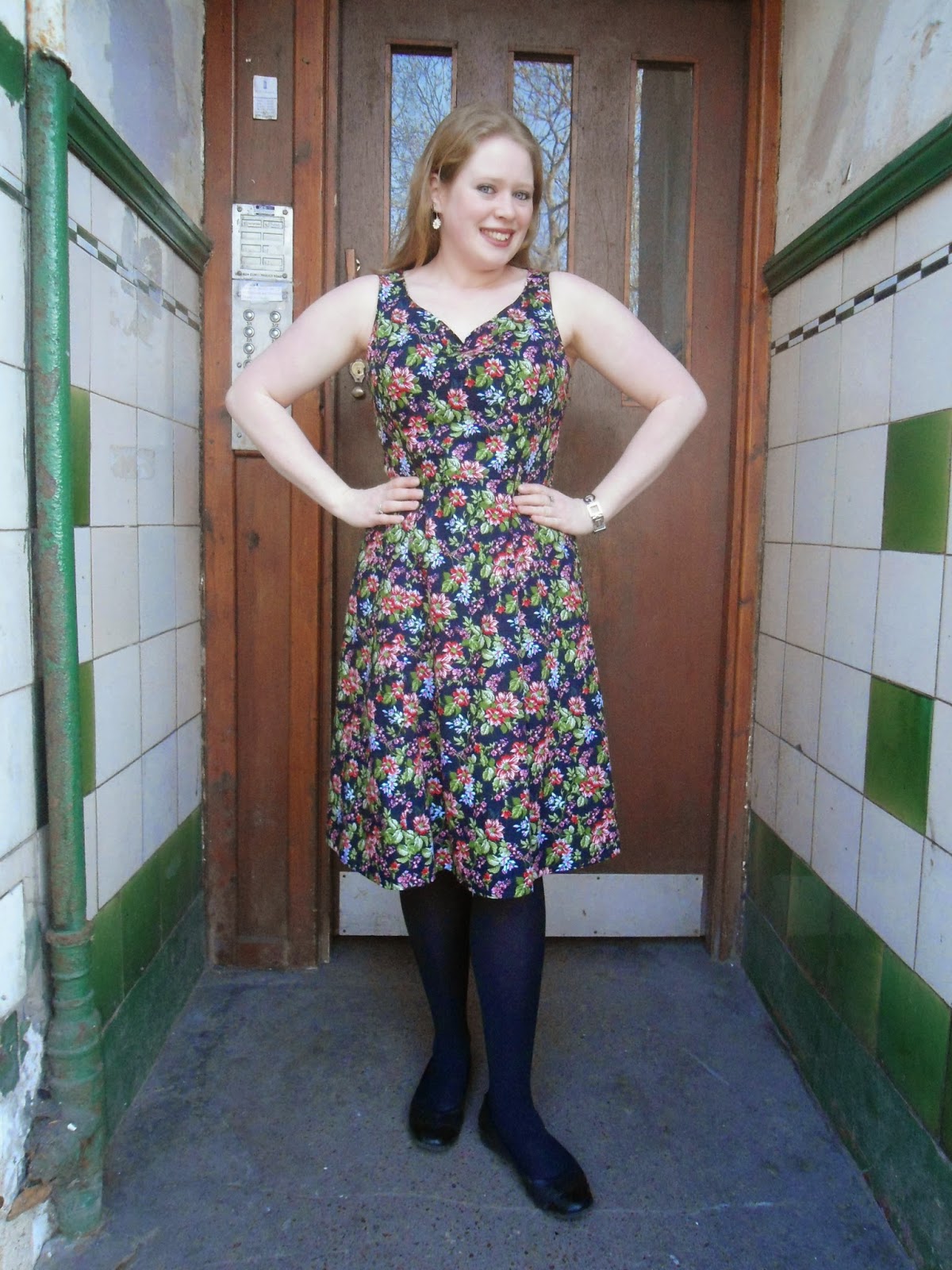 The fabric was a 45" wide cotton from Mandors. I realised at the last minute that I didn't actually have any fabric that was appropriate for a first run of the dress so spent ages lurking all the new bolts which have recently appeared. I felt the flowers on this print stood out more than a regular floral.